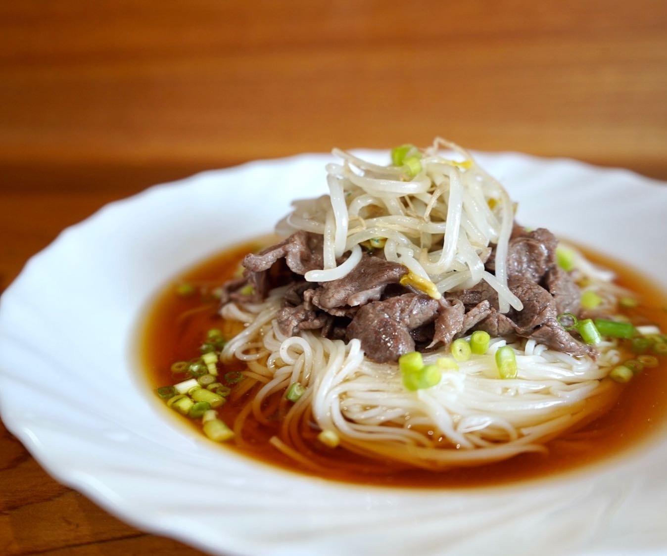 牛肉を炒め、山葵を少しつけてソーメンと一緒に食べると、あっさりしてとても美味しいですよ👍🌞